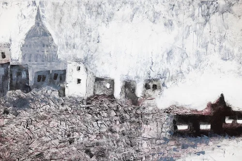 Mixed media, monotype, wax, acrylic, powder pigment and graphite